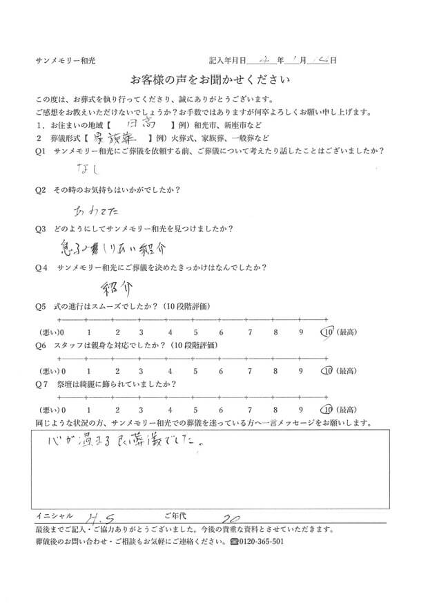 心が温まる良い葬儀でした(埼玉県日高市 70代のお客様)
